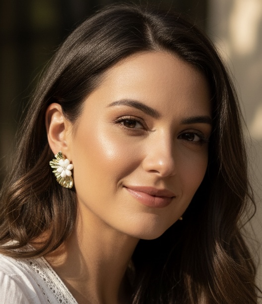 Ces boucles d’oreilles modernes et romantiques au style contemporain. Stylisée la fleur blanche se colle contre l’oreille ces boucles d’oreilles romantique-chic donneront à vos tenue un look contemporain associé à un esprit délicat ,Idéale pour vous accompagner le jour votre mariage,