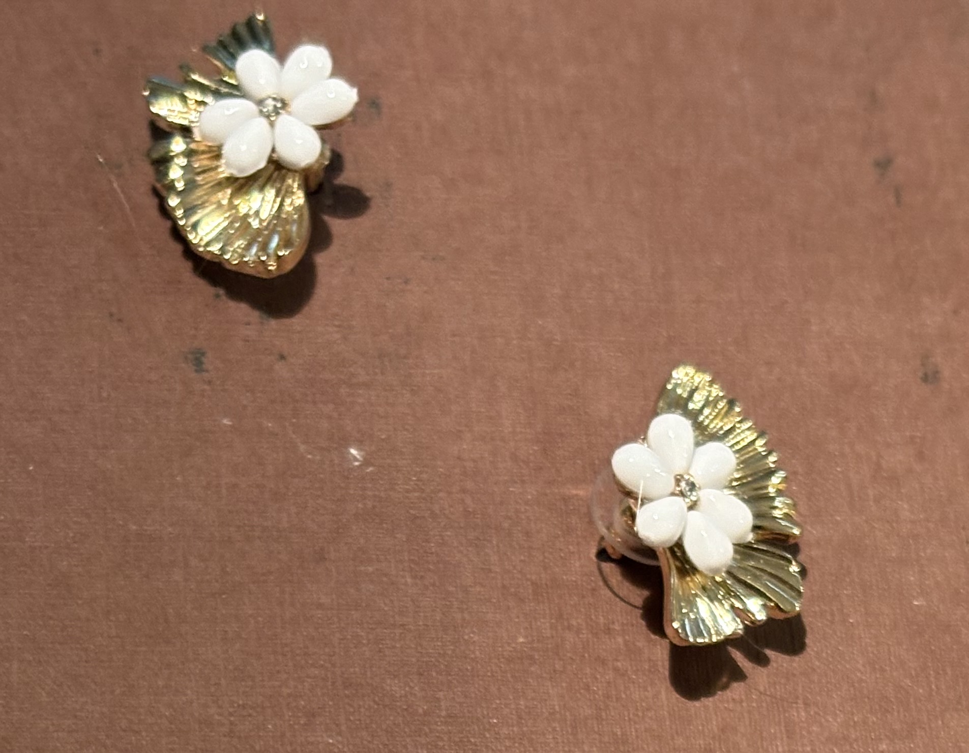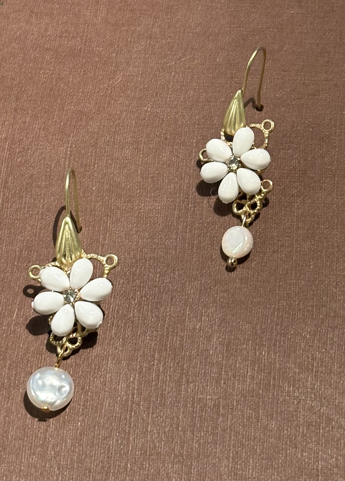 Fleur en métal émaillé avec une perle en verre opale