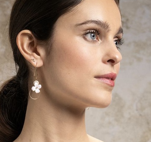 Ces boucles d’oreilles dorées, délicates et élégantes, sont parfaites pour les mariées en quête d’une touche raffinée. Fabriquées en métal doré, avec une fleur émaillée elles capturent la lumière avec grâce et ajoutent une note de luxe à la tenue nuptiale.